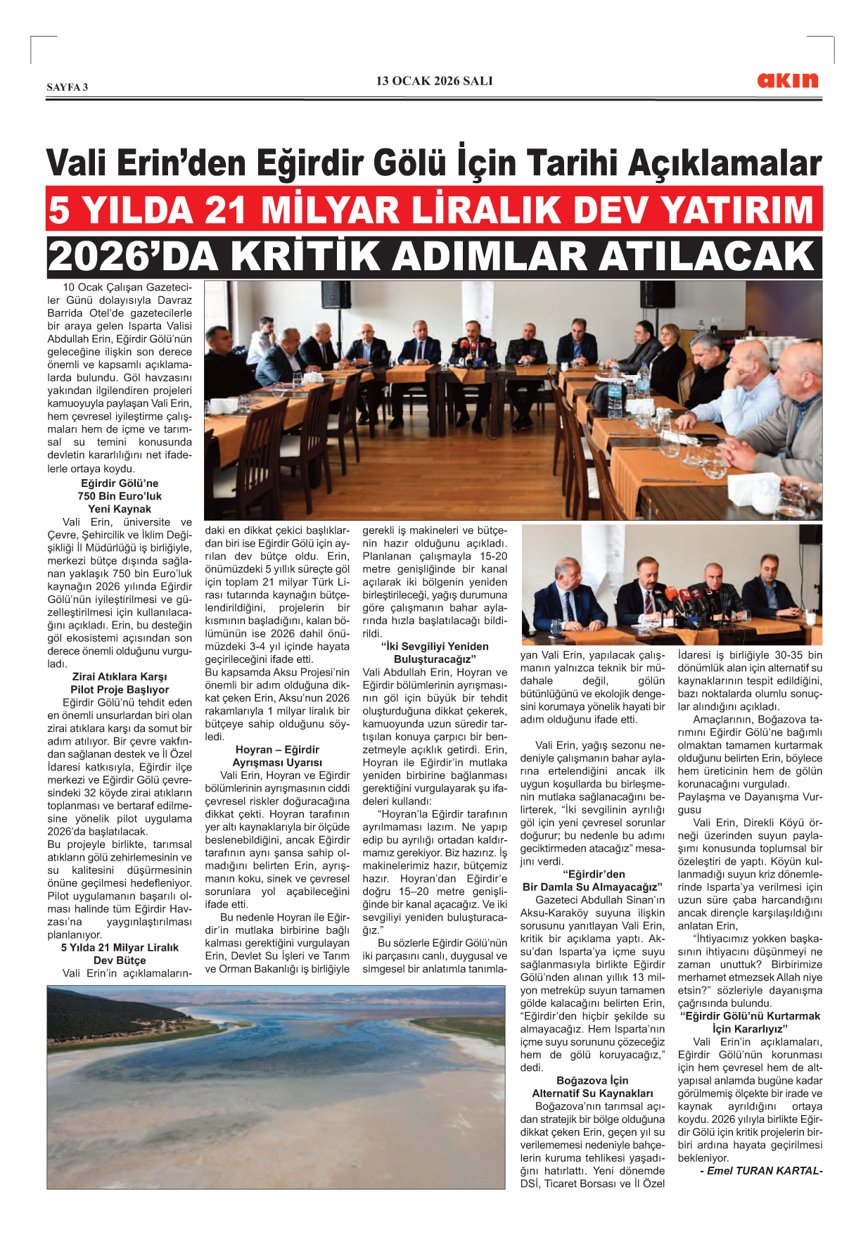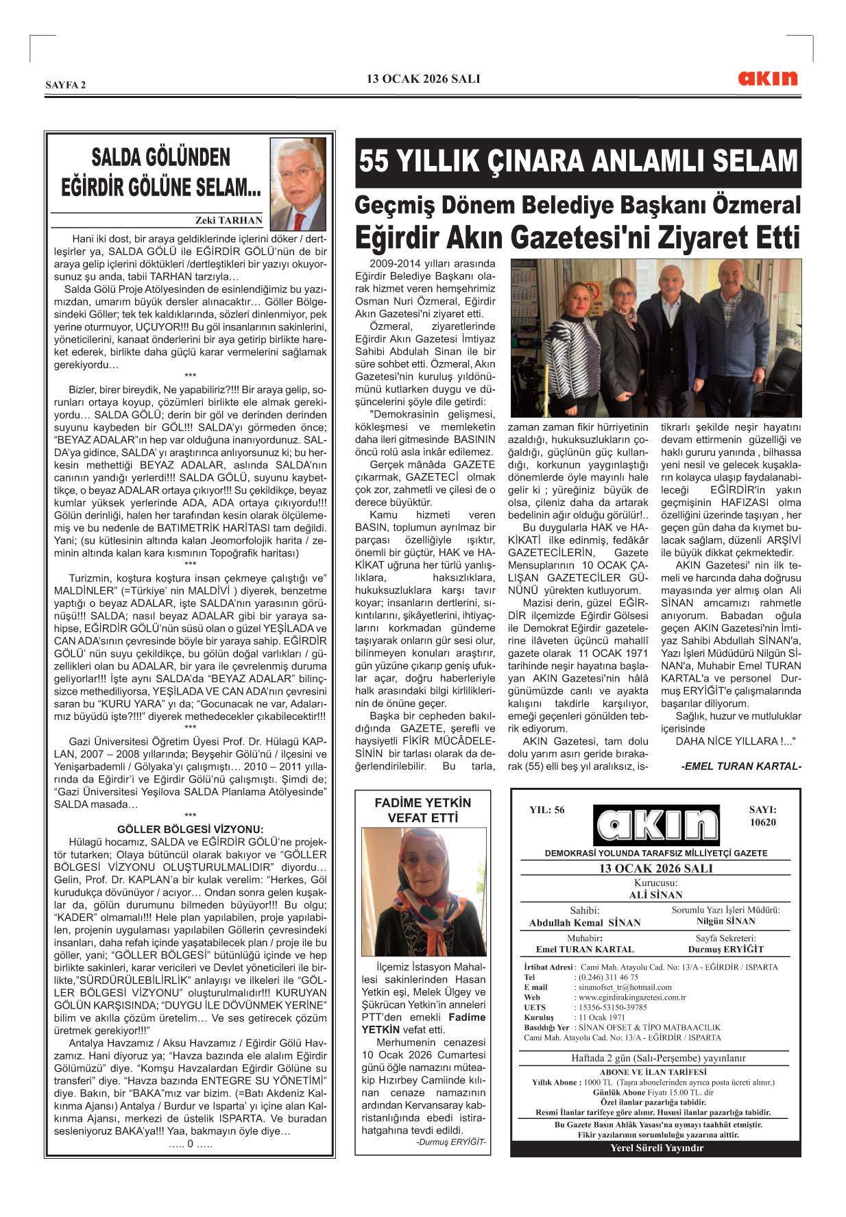 Zeki Tarhan Salda Gölünden Eğirdir Gölüne Selam Haberin Devamı..