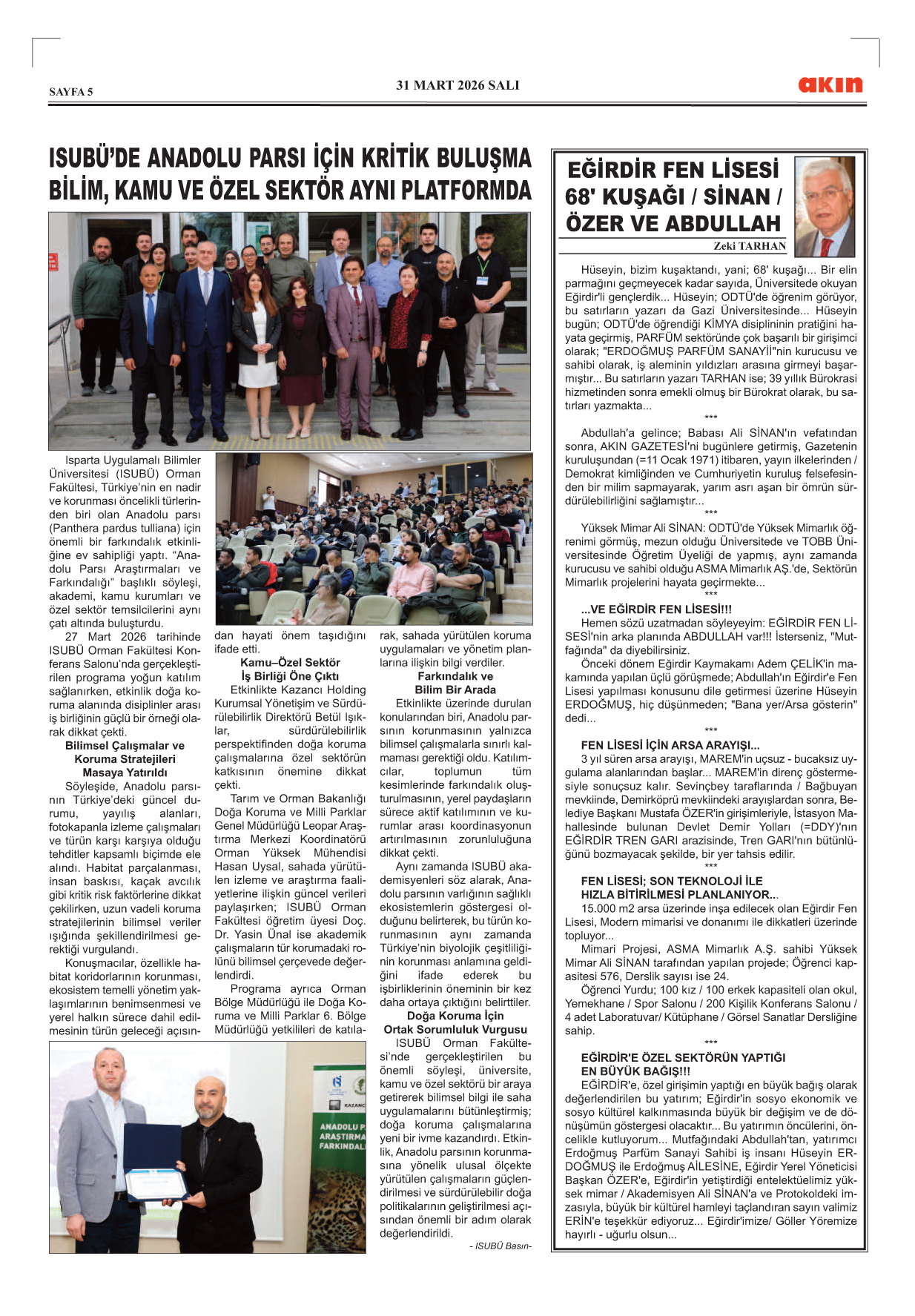 Zeki Tarhan EĞİRDİR FEN LİSESİ Haberin Devamı..